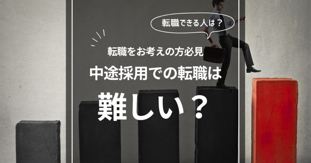 「中途採用での転職は難しい?」 「中途採用でも転職できる人の特徴は?」 転職したいけど、中途採用での転職に不安を感じている人もいるのではないでしょうか。 そんな方のために、本記事では中途採用での転職について徹底解説していきます。 さらには、...