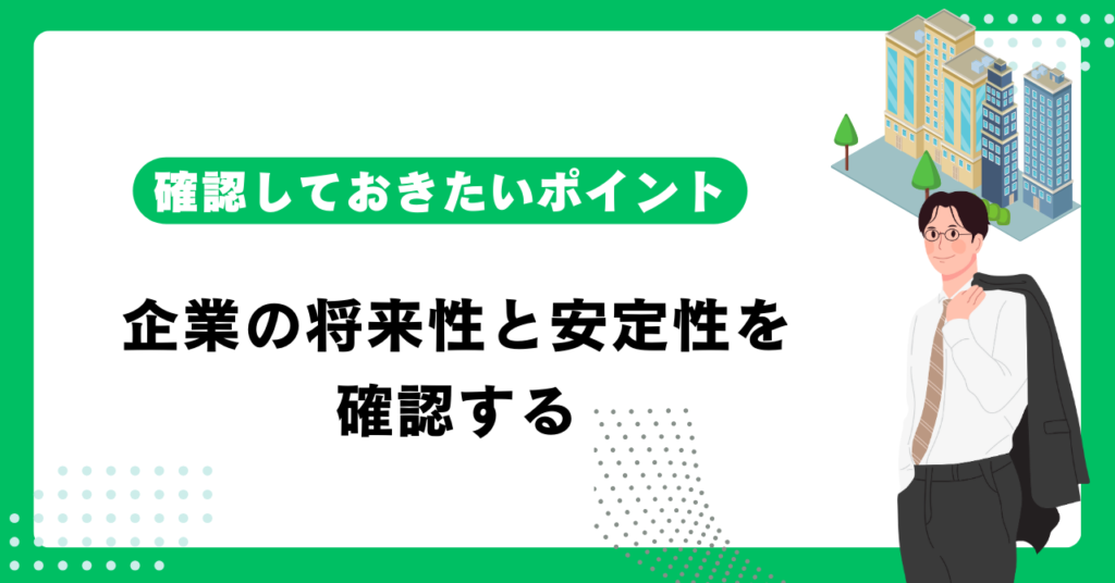 企業の財務状況や業界内での地位などをチェックすることで、その企業が将来的に安定しているのかを判断することができます。