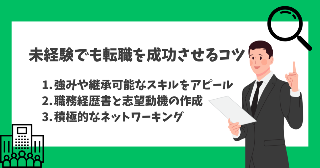 未経験でも転職を成功させるには、ポイントがいくつかあります。