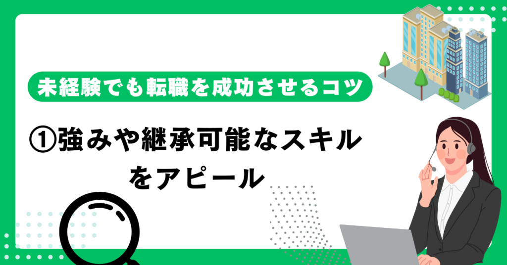 未経験の職種への転職では、前職で培ったスキルを上手くアピールすることが成功のポイントとなります。