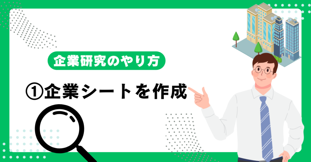 - 企業シートを作成して調べておくべき項目をまとめておく