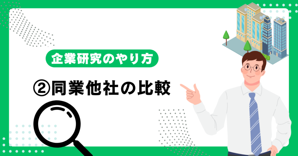 転職先を決める際、同業他社との比較を行うことで同じ業界の中で、その会社がどのくらい強いのかがわかります。