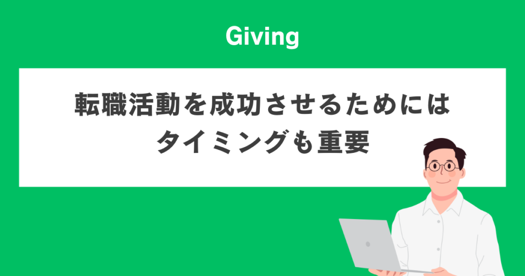 Givingなら、転職を考える人々に寄り添い、最適なキャリアチェンジを支援しているので、転職時期についても気軽に相談しやすいです。